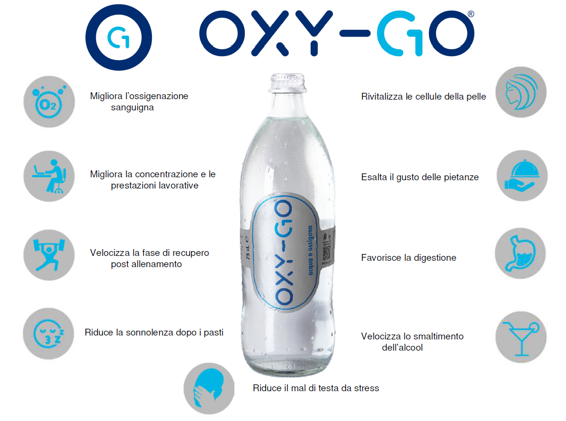 Oxy-go è la bevanda con più ossigeno al mondo. Con i suoi 150mg di ossigeno/litro, Oxy-go ti aiuta a ripartire in caso di affaticamento, mancanza di concentrazione, stanchezza